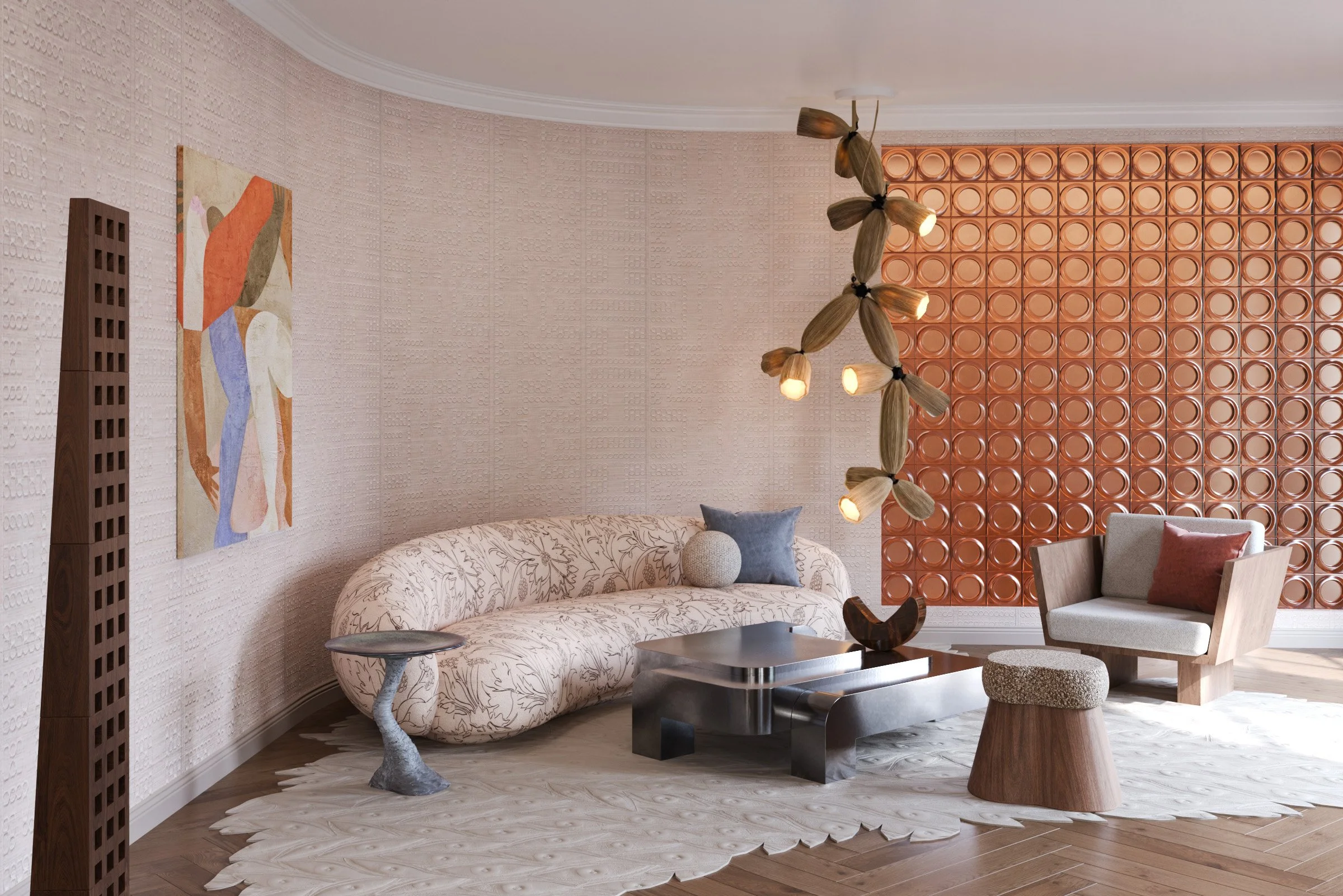 A continuous spatial narrative where architecture, objects, and art merge into one cohesive composition.