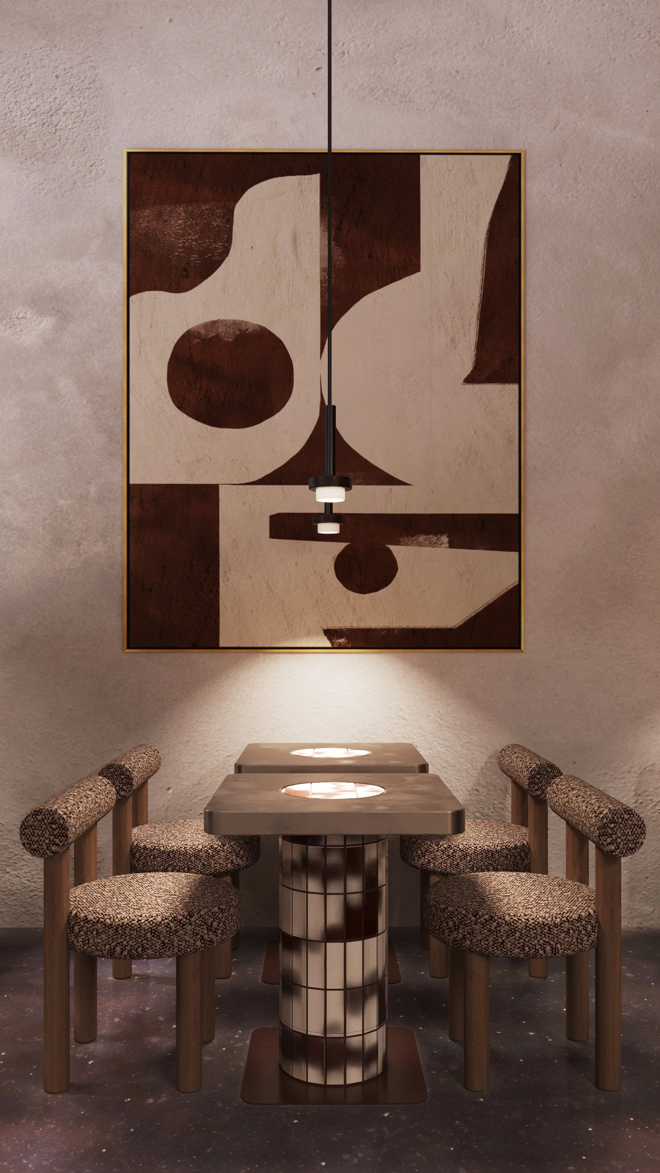 Custom-designed tables were developed specifically for the project, contributing to a cohesive spatial language. Each element is positioned with precision, balancing utility with a more sculptural presence.